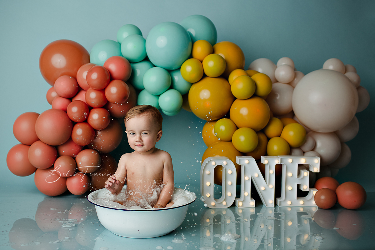 Sessão de smash the cake do Joaquim, realizada no estúdio Bel Ferreira em Curitiba